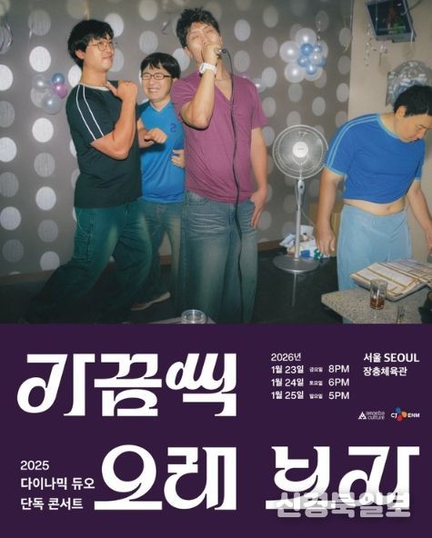 2025 다이나믹 듀오 단독 콘서트 '가끔씩 오래 보자'는 오는 12월 20, 21일 부산 벡스코 오디토리움, 24일 대구 엑스코 동관 4홀, 27일 광주 김대중컨벤션센터 다목적홀, 내년 1월 23, 24, 25일 서울 장충체육관에서 개최된다.