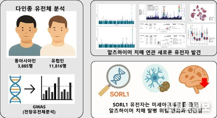 알츠하이머병은 전 세계적으로 5천7백만 명 이상이 고통받는 대표적 신경퇴행성 질환으로, 유전적 요인이 전체 발병 위험의 약 60~80%를 차지하는 것으로 알려져 있다. 그러나 지금까지의 대규모 유전체연관분석(GWAS)은 대부분 유럽인 중심으로 수행되어, 아시아 인구의 유전적 다양성과 특이적 변이를 충분히 반영하지 못했다.