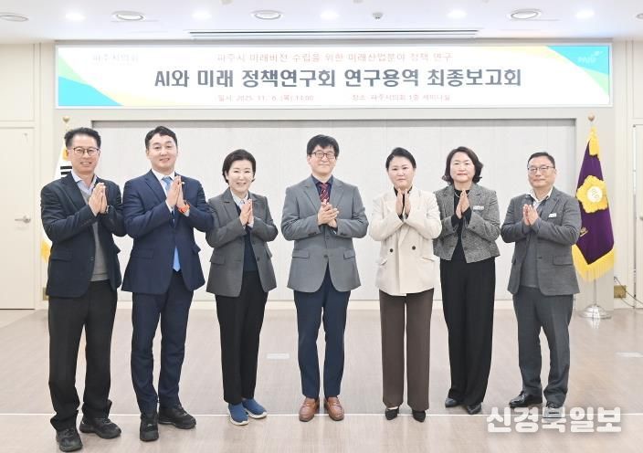 [ 신경북일보 ] 파주시의회 의원연구단체인 ‘AI와 미래 정책연구회’는 지난 6일 시의회 세미나실에서 '파주시 미래비전 수립을 위한 미래산업분야 정책연구' 최종보고회를 개최했다.
