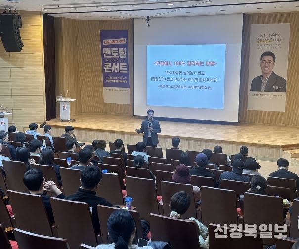 [ 신경북일보 ] 울산 동구는 지난 11월 10일 오후 7시 동구청 5층 중강당에서 유명 취업 강사인 황인 강사를 초청해 ‘2025 동구 취업 멘토링 콘서트’를 성공적으로 개최했다.