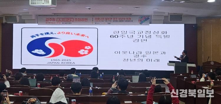 이번 강연은 ‘이웃나라의 이해와 경주 청년의 미래’를 주제로, 글로벌 시대를 살아가는 청년들에게 필요한 세계시민의 자질을 모색하고 한일 양국의 지속 가능한 협력 방향을 함께 논의하기 위해 마련됐다.