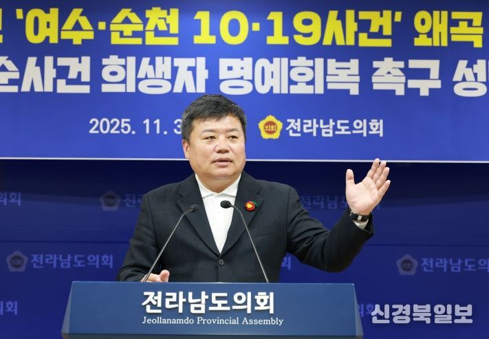 [ 신경북일보 ] 전라남도의회 정영균 의원(순천1)이 지난 11월 11일 열린 여순사건지원단 행정사무감사에서 여순사건의 시실 왜곡된 인식 확산과 청소년 세대의 역사 인식 부족 문제를 지적하며 “도 차원의 체계적인 모니터링 시스템 구축과 교육청과의 연계 교육 확대가 시급하다”고 강조했다.