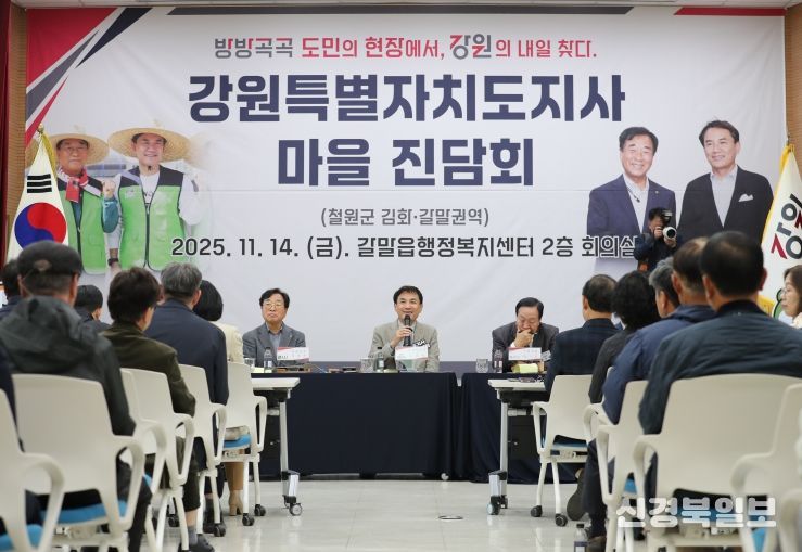 [ 신경북일보 ] 김진태 강원특별자치도지사는 '강원특별법' 군사특례를 활용한 첫 권한 행사로 지난 3월 군사규제 개선 성과를 거둔 철원군을 11월 14일 방문해 도지사 ‘마을진담회’(진솔한 +간담회)의 네 번째 자리를 마련했다.