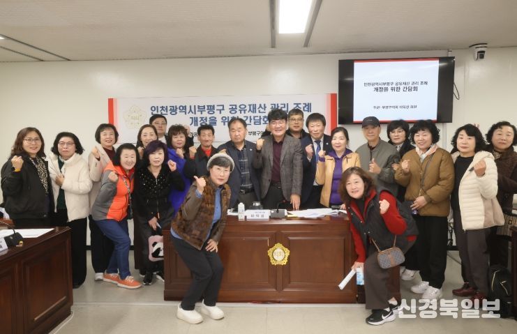 [ 신경북일보 ] 인천 부평구의회는 11월 14일 부평구의회 도시환경위원회실에서 이익성 의원(국민의힘, 부평2·5·6, 부개1, 일신동)이 「인천광역시부평구 공유재산 관리 조례 개정」을 위한 간담회를 개최했다고 밝혔다.