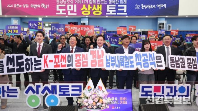 [ 신경북일보 ] 경상남도는 18일 거제 반다비체육센터에서 열린 ‘도민 상생토크’에서 기업혁신파크, 광역교통망, 미래산업 등을 연계한 성장전략을 제시하며 지원 의지를 밝혔다.