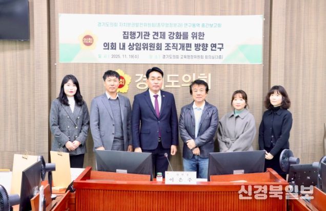 [ 신경북일보 ] 경기도의회 자치분권발전위원회 총무행정분과 이은주 위원장(국민의힘, 구리2)은 11월 19일, 「집행기관 견제 강화를 위한 의회 내 상임위원회 조직개편 방향 연구」 중간보고회를 주재했다. 이번 회의는 지난 9월 29일 열린 착수보고회 이후 연구 추진 경과를 점검하고, 향후 연구 방향을 구체화하기 위해 마련됐다.