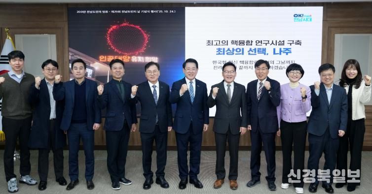 김영록 지사는 “전남이 진정한 AI·에너지 수도로 도약하기 위한 마지막 퍼즐은 핵융합”이라며 “정부가 1조 2천억 원 규모의 인공태양 연구시설을 시작으로 핵융합 분야 투자를 확대하는 만큼, 전남 나주에 유치되면 행·재정적 지원에 적극 나서겠다”고 밝혔다.