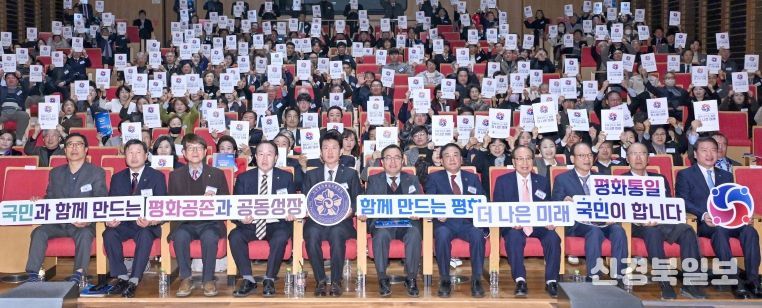 [ 신경북일보 ] 제22기 민주평화통일자문회의 대구지역회의 출범대회가 24일 IM뱅크 제2본점 대강당에서 신철범 대구부의장, 방용승 사무처장, 홍성주 대구광역시 경제부시장, 이만규 대구광역시의회 의장, 대구지역 9개 구·군협의회장과 자문위원 등 350여명이 참석한 가운데 열렸다.