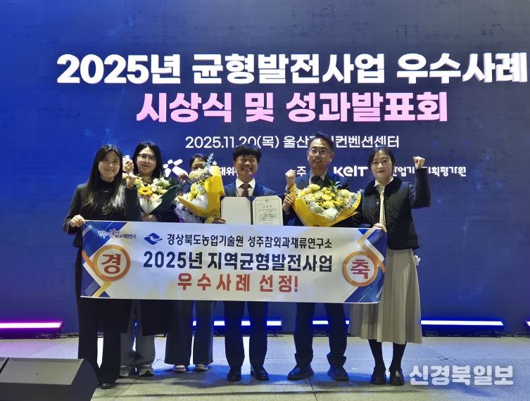 [ 신경북일보 ] 경상북도는 20일 대통령 직속 지방시대위원회가 주관한 ‘2025년 지역균형발전사업 우수사례 시상식’에서 경상북도농업기술원 성주과채류연구소가 지역농업연구기반 및 전략작목육성(R·D) 지원계정 부문 우수사례로 선정돼 우수 기관상을 받았다.