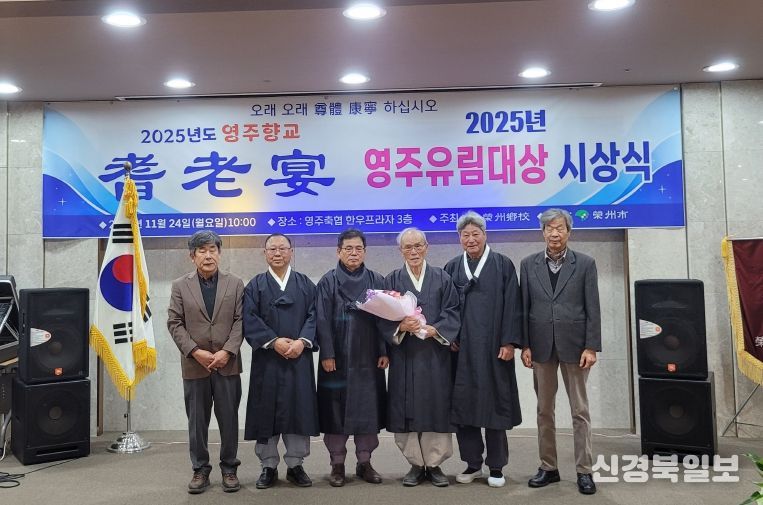[ 신경북일보 ] 영주시는 지난 24일 영주축협한우프라자 3층 대강당에서 열린 ‘2025년 영주향교 기로연’와 함께 ‘2025년 제1회 영주 유림대상’ 시상식을 개최했다.