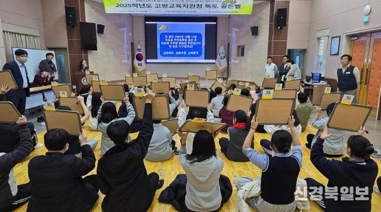 [ 신경북일보 ] 경상북도고령교육지원청은 11월 24일 고령교육지원청 3층 대가야홀에서 관내 초・중학교 학생 43명을 대상으로‘2025학년도 독도골든벨’을 개최했다.