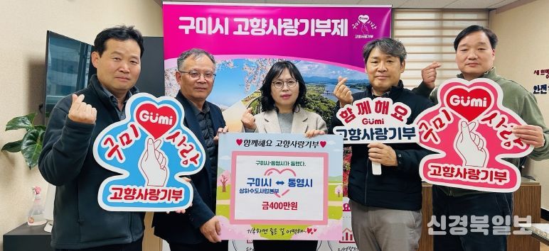 [ 신경북일보 ] 구미시와 통영시는 지난 26일 고향사랑기부제 활성화와 지방 간 상생협력을 강화하기 위해 각각 400만원씩 고향사랑기부금을 상호 기탁했다고 밝혔다.