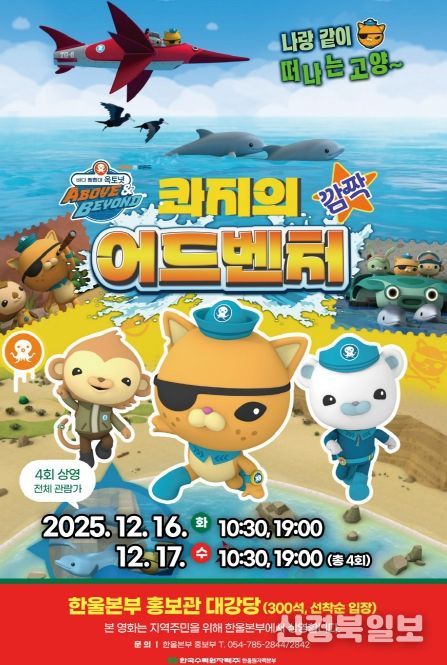 [ 신경북일보 ] 한국수력원자력(주) 한울원자력본부는 지역주민을 대상으로 12월 16일, 17일 양일간 한울에너지팜 대강당에서 극장판 애니메이션'바다 탐험대 옥토넛 어보브 앤 비욘드: 콰지의 깜짝 어드벤처'를 상영한다.