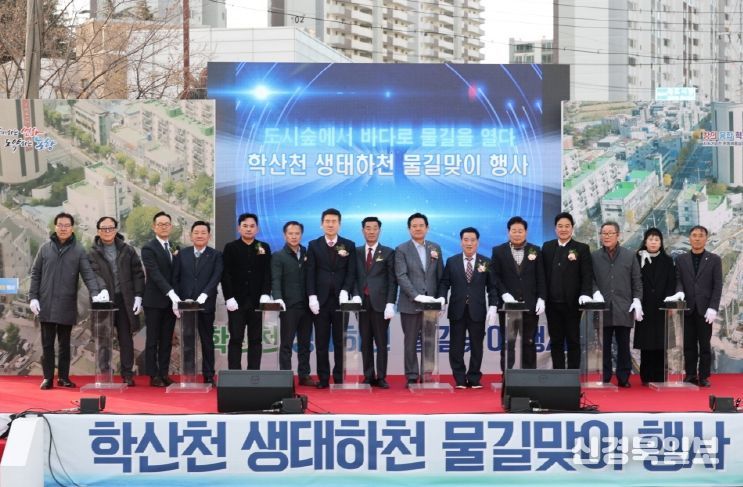 [ 신경북일보 ] 포항시는 8일 ‘학산천 생태하천 복원사업’ 준공을 앞두고 학산천 시점부(학산동 222-23번지)에서 ‘물길맞이 행사’를 열고 도심 생태하천 복원의 새로운 출발을 알렸다.
