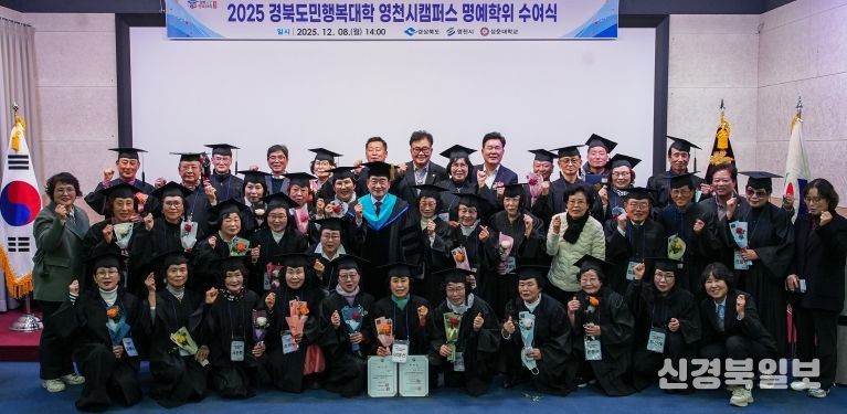 [ 신경북일보 ] 영천시는 8일 성운대학교 강당에서 수료생과 관계자 60여 명이 참석한 가운데 ‘2025년 경북도민행복대학 영천캠퍼스 제5기 명예학위 수여식’을 개최했다.