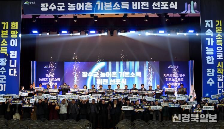 [ 신경북일보 ] 장수군은 8일 한누리전당 산디관에서 ‘농어촌 기본소득 비전 선포식’ 행사가 성황리에 개최됐다고 밝혔다.