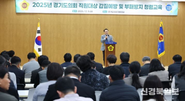 [ 신경북일보 ] 경기도의회는 9일 오전 의회 대회의실에서 전 직원을 대상으로 ‘갑질예방 및 부패방지 청렴교육’을 실시했다.