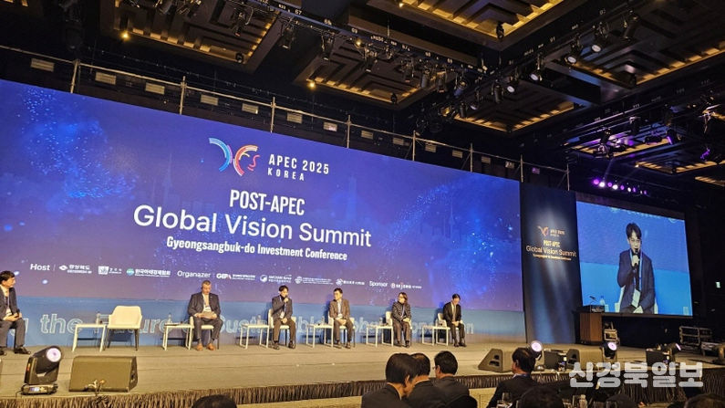 [ 신경북일보 ] 27일 개막한 'Post-APEC Global Vision Summit'에는 국내외 기업인과 외교 관계자를 포함한 700여 명이 참석했다. 회의는 AI, 바이오, 공급망, K-컬처를 주요 의제로 다루며, 포스트 APEC 시대 국제 협력의 중요성을 강조했다. 경북 22개 지자체장은 투자 확대와 글로벌 연계를 강화하겠다는 의지를 담은 '포스트 APEC 비전 선언'을 발표했다.