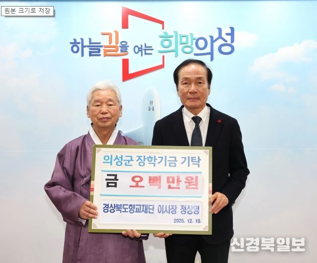 [ 신경북일보 ] 재단법인 의성군인재육성재단(이사장 김주수 의성군수)은 지난 12월 10일 경상북도 향교재단 정상영 이사장이 의성군 인재 육성을 위해 장학금 500만 원을 기탁했다고 밝혔다.
