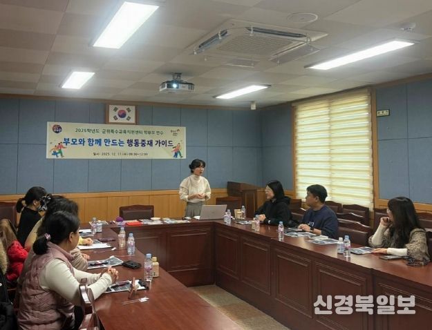 [ 신경북일보 ] 대구군위교육지원청은 12월 17일 특수교육대상학생의 도전 행동을 이해하고 가정에서 실천할 수 있는 행동지원 전략을 안내하기 위해 ‘부모와 함께 만드는 행동중재 가이드’ 연수를 실시했다.