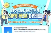 [ 신경북일보 ] 영주시는 연말을 앞두고 고향사랑기부제 기부자들을 위한 특별 혜택 이벤트를 10월 27일부터 11월 30일까지 진행한다. 이번 이벤트는 기부자들에게 감사의 마음을 전하고 참여를 독려하기 위해 마련된 것으로, 이벤트 기간 동안 10만 원을 기부한 모든 기부자에게는 1만 원 상당의 사은품이 추가로 증정된다. 사은품은 선택한 답례품에 따라 달라지며, 사과(3.5kg)를 선택하면 사과 1kg이, 한우 등심(400g)을 선택하면 곰탕·곰탕고기·머리고기 각 1팩이, 2025년산 영주 선비골 햅쌀(6kg)을 선택하면 햅쌀 2kg이 추가로 제공된다. 이 외에도 총 24종의 답례품 중 원하는 품목을 자유롭게 선택할 수 있다. 또한 웰로를 통해 기부할 경우 선착순 1,200명에게 웰포인트 5,000원이 지급된다. 웰포인트는 네이버페이·카카오페이·배달의민족 쿠폰 등으로 교환 가능하며, 추가로 무작위 추첨 100명에게는 사과 3.5kg(3만 원 상당)의 답례품이 제공된다. 김준한 세무과장은 “이번 이벤트는 기부자분들께 감사의 마음을 전하기 위해 준비했다”며 “연말을 앞두고 마련한
