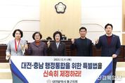 [ 신경북일보 ] 대전 동구의회는 11일 제290회 정례회 제2차 본회의에서 대전·충남 행정통합의 조속한 추진을 촉구하는 결의안을 채택했다고 밝혔다. 이번 결의안을 대표 발의한 박철용 의원은 “수도권 집중현상과 지속적인 인구 감소로 인해 지방 경쟁력이 약화되고 있으며, 이러한 위기는 개별 지자체 차원의 대응만으로는 구조적 위기를 극복하기 어렵다”고 지적했다. 이어 “대전과 충남은 교통망과 생활권이 긴밀히 연결된 지역으로, 대전의 과학기술과 충남의 제조업이 결합한다면 강력한 광역 경제권 형성이 가능하다”고 말하며, 이러한 잠재력에도 불구하고 “분절된 행정체계에서는 신속한 정책 수립이 어려운 상황”이라고 안타까움을 나타냈다. 이를 해결하기 위해 “대전충남특별시 설치 및 경제과학수도 조성을 위한 특별법안을 마련해 지난 9월 30일 국회에 발의했으나, 절차·제도 검토가 이어지며 법안 처리가 지연되고 있다”며 우려를 표했다. 박철용 의원은 결의안을 통해 “대전·충남의 행정통합은 국가균형발전의 필수 생존전략이 된 지금 더 이상 미룰 수 없는 과제”라며 “행정통합은 지역 생존이자 중부권의 미래 경쟁력을 결정짓는