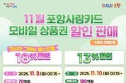 [ 신경북일보 ] 포항시는 코리아 그랜드 페스티벌 기간 지역 내 소비 붐업을 위해 내달 3일부터 카드형·모바일 포항사랑상품권을 70억 원 규모로 18% 할인판매를 시작한다. 코리아 그랜드 페스티벌은 이달 29일부터 내달 9일까지 12일간 개최되는 국가 차원의 통합 할인 행사로 제조·유통과 전통시장, 소상공인 업계가 참여한다. 이번 포항사랑카드 특별할인 판매는 기존 할인 혜택 13%에 5%를 추가해 총 18% 할인 혜택이 적용되며, 국비를 추가 확보해 코리아 그랜드 페스티벌과 연계로 진행하는 행사로 지역 내 소비 활성화에 기여할 것으로 기대하고 있다. 또한 시는 내달 3일부터 시작하는 포항사랑카드 70억 원 규모의 18% 할인판매에 이어 내달 10일부터는 180억 원 규모로 13% 할인판매 등 11월에 총 250억 원을 발행해 실질적인 소비 촉진으로 지역 상권 회복과 지역경제 선순환을 이어가겠다는 방침이다. 이번 포항사랑카드 18% 특별 할인판매의 개인 구매 한도는 10만 원이며, 보유 한도는 100만 원이다. 오는 11월 3일 0시 15분부터 모바일 앱(iM샵)에서 충전할 수 있으며, 104개 판매