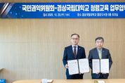 [ 신경북일보 ] 경상국립대학교와 국민권익위원회는 10월 29일 오후 2시 가좌캠퍼스 도서관 6층 회의실에서 청렴한 미래인재 양성 및 청렴문화 확산을 위해 업무협약을 체결했다. 업무협약 체결식에는 권진회 총장을 비롯해 대학 보직자와 유철환 위원장과 부패방지국장, 대변인, 고충민원심의관, 청렴연수원장 등 10여 명이 참석했다. 행사는 참석자 소개, 각 기관 홍보영상 시청, 인사 말씀, 업무협약 내용 소개, 업무협약 서명 및 교환, 기념 촬영의 순으로 진행됐다. 이번 협약은 대학 내 청렴 가치관 확립과 관련 교육의 체계적 실현을 목표로 하며, 지속 가능한 청렴 교육을 통해 대학생들을 청렴 리더로 양성하는 데 중점을 둔다. 주요 협력 사항으로는 ▲대학생 청렴 가치관 확립을 위한 교육 ▲교직원의 청렴 역량 향상 교육 ▲대학생과 교직원의 고충 상담 및 해소를 위한 협력이 포함된다. 경상국립대학교 권진회 총장은 “청렴은 대학의 사회적 신뢰를 지탱하는 핵심 가치”라며 “우리 대학 학생들이 배움 속에서 청렴을 체득하고, 이를 사회로 확산시키는 청렴인재로 성장하도록 적극 노력하겠다.”라고 말했다. &n