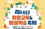 [ 신경북일보 ] 부산 서구는 오는 11월 1일 송도오션파크에서 서부교육지원청과 공동으로 '2025년 서구 희망교육 & 평생학습 축제'를 개최한다. 이번 축제는 ‘아이부터 어른까지, 함께 배우고 나누는 즐거운 하루’를 주제로 오전 11시부터 오후 4시까지 다채로운 프로그램이 펼쳐질 예정이다. 대신여자중학교의 신나는 밴드 공연을 시작으로, 관내 7개 학교, 10개 학생 동아리, 12개 평생학습 동아리가 참여해 열띤 무대를 선보인다. 또한 38개의 특색 있는 체험부스, 온가족 플리마켓, 희망교육 & 평생학습 작품 전시회 등 풍성한 볼거리와 즐길거리로 가득할 예정이다. 특히 오는 11월 22일 개관 예정인 서구아미드림도서관 홍보‧체험부스도 운영되어 구민들이 서구의 첫 구립도서관을 미리 만나볼 수 있다. 공한수 서구청장은 “희망교육과 평생학습이 어우러지는 이번 축제를 통해 지역 주민들이 함께 배우고 소통하며 성장하는 계기가 되길 바란다”고 말했다. [뉴스출처 : 부산시서구]