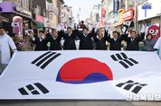 [ 신경북일보 ] 충북 보은군은 1일 제107주년 3·1절을 맞아 ‘태극기 물결 만세운동’을 개최하고 순국선열의 숭고한 독립 정신을 기리는 뜻깊은 시간을 가졌다. 한국자유총연맹 보은군지회 주관으로 열린 이번 행사는 보훈단체와 사회단체, 군민 등 900여 명이 함께 참여한 가운데 진행됐다. 도심을 가득 메운 태극기 물결 속에서 참가자들은 대한독립만세를 외치며 107년 전 그날의 함성을 재현했다. 참가자들은 중앙사거리에서 뱃들공원까지 행진하며 3·1운동의 역사적 의미를 되새겼고, 태극기가 일제히 펄럭이는 장면은 현장을 찾은 군민들에게 깊은 울림을 전했다. 거리에는 응원과 박수가 이어지며 세대를 아우르는 공감의 장이 마련됐다. 행진 이후에는 평화의 소녀상 헌화를 통해 선열들의 희생을 추모하고, 독립선언서 낭독으로 자주독립의 의미를 되새겼다. 이어 보은군립합창단의 공연이 펼쳐져 행사 분위기를 한층 고조시켰으며, 참가자 전원이 ‘독도는 우리땅’ 노래에 맞춰 플래시몹을 선보이며 나라 사랑의 의지를 다지는 시간으로 행사를 마무리했다. 최재형 보은군수는 “제107주년 3·1절을 맞아 군민과 함께한 이번 행사를 통