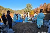 [ 신경북일보 ] 울진군 금강송면은 지난 11월 12일 (음력9월 23일) 하원리 중섬 김현규 장군 묘소 및 면사무소 2층 회의실에서 관내 기관·단체장, 노인회장, 리장, 주민 등 60여 명이 참석한 가운데 김현규 장군 묘제 및 무후제를 봉행했다. 일제 강점기 왜적을 상대로 의병활동을 하다가 돌아가신 김현규 장군의 애국충정의 얼을 되새기고, 후손 없이 귀중한 재산을 국가와 지방자치단체에 헌납하고 별세한 무후 어르신들의 넋을 기리기 위해 매년 22신위를 추모하는 제사를 지내고 있다. 이날 금강송면 새마을부녀회(회장 김영자)에서 정성스럽게 준비한 제사상으로 제례를 마치고 참석자들이 제사음식을 나눠 먹으며 고인의 은덕을 기렸다. 이종철 금강송면장은 “김현규 장군 묘제 및 무후제를 통해 고인의 넋을 기리고 제례에 참석하신 모든 분과 제물 준비에 수고하신 새마을부녀회원들에게 감사 드린다”라고 전했다.