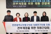 [ 신경북일보 ] 인천 부평구의회는 지난 1월 14일 부평구의회 의정회의실에서 유정옥 의원(국민의힘, 부평3, 산곡3·4, 십정1·2동) 주관으로 「인천광역시부평구의회 의원연구단체 지원 조례」의 전부개정을 위한 의원 간담회를 개최했다고 밝혔다. 이번 간담회는 지난해 부평구의회 의회운영위원회 행정사무감사에서 의원연구단체 운영과 관련하여 지적됐던 사항에 대하여, 유정옥 의원과 5명의 의원이 함께 개선 방안을 모색하고자 마련됐다. 이날 참석한 의원들은 「인천광역시부평구의회 의원연구단체 지원 조례」의 문제점에 대해 공감하며, 전부개정을 통해 의원연구단체가 보다 책임감있게 효율적으로 운영되어야 한다고 의견을 모았다. 조례의 주요 개정 사항은 ▲하나의 의원연구단체에 최소 가입 의원 수 상향, ▲의원 1인당 가입 가능한 연구단체 수 축소, ▲전국동시지방선거로 의원 임기가 만료되는 해에 연구단체 등록 제한 등으로, 의원연구단체의 효율적 운영을 통한 연구활동의 몰입도를 강화하는 내용이 포함됐다. 해당 조례의 전부개정안을 대표발의한 유정옥 의원은 “최근 지방의회는 정책 중심의 의정활동이 요구되면서 의원 개개인의 전문성 강화와 체