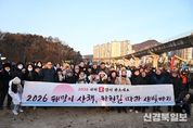[ 신경북일보 ] 의정부시의회는 지난 1일 병오년 새해를 맞아 지역 주민들과 함께 걸으며 희망찬 2026년을 시작할 수 있도록 ‘해맞이 산책, 하천길 따라 새빛정원까지’ 신년 해맞이 행사에 참석했다. 이번 행사는 ▲호원 생활체조광장에서 출발해 ▲신의교~신곡교 중간지점 벽천분수 ▲동오역 생활체조광장 ▲경기도청 북부청사역 인근 벽천분수를 거쳐 ▲신곡새빛정원까지 이어지는 릴레이 산책 코스로 진행됐다. 해맞이 행사에는 시민들과 함께했으며, 15개 동 통장협의회가 행사 준비와 운영에 참여해 중랑천, 부용천 산책로를 걸으며 새해에도 시민들과의 공동체 의식을 함양하고자 마련됐다. 김연균 의장을 비롯한 권안나 부의장과 의정부시장, 의정부시통장협의회 등이 참석했다. 행사에 참석한 의원들은 “희망과 도약을 상징하는 붉은 말의 해를 맞아 시민들과 첫 해맞이를 함께하게 되어 더없이 기쁘다며” “올 한 해 더욱 시민들의 목소리에 귀 기울이고 함께 공감·소통하며, 의정부시의 발전을 이끄는 의정부시의회가 되도록 노력하겠다”고 전했다. [뉴스출처 : 경기도 의정부시의회]