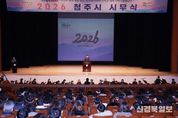 [ 신경북일보 ] 청주시는 2일 청주예술의전당 대공연장에서 2026년 시무식을 개최하고 새해 시정 운영의 힘찬 출발을 알렸다. 이날 시무식에는 이범석 청주시장, 신병대 부시장을 비롯한 시 직원들과 산하기관 관계자 등 1천200여명이 참석해 새해 각오를 다졌다. 행사 전에는 직원 간 담소 시간이 마련됐으며, 오전 9시부터 국민의례를 시작으로 시장 신년사, 시립예술단 공연, 신년 인사가 순서대로 진행됐다. 이범석 시장은 신년사에서 “민선8기 청주시가 지금까지 시민과 이룬 성장과 변화는 뿌리 깊은 나무가 되어 어떤 비바람에도 흔들리지 않는 밑거름이 됐다”면서 “그 기반을 바탕으로 2026년을 청주의 더 큰 미래와 번영을 향해 나아가는 ‘개화공영(開花共榮)’의 해를 만들겠다”고 밝혔다. 이어진 시립예술단 공연에서 합창단은 ‘우리가 청주다’ 곡을 선보이며 새해를 여는 희망의 메시지를 전했고, 시장과 간부 공무원들은 사무실로 향하는 전 직원과 신년 인사를 나누며 2026년 시정 목표 달성을 위한 의지를 다졌다. 한편, 청주시는 2026년 화두로 개화공영을 선정했다. 민선 8기 출범 이