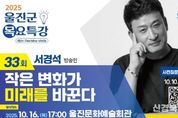 [ 신경북일보 ] 울진군은 오는 10월 16일 오후 5시 후포면 울진문화예술회관에서 제33회 울진군 목요특강을 개최한다. 이번 특강은 방송인 서경석을 초청하여‘작은 변화가 미래를 바꾼다’라는 주제로 강연이 진행된다. 오랜 기간 방송 활동을 통해 국민과 소통하며 따뜻하고 유머러스한 화법으로 많은 사랑을 받아온 서경석 강사는 이번 강연에서 일상 속 작은 변화와 실천이 개인의 성장과 밝은 미래로 이어진다는 메시지를 군민들에게 전할 예정이다. 울진군 목요특강은 사전 신청 없이 무료로 관람할 수 있으며, 강연 후 현장에서 제공되는 만족도 조사 참여자와 사전질문 신청자 중 추첨을 통해 소정의 경품을 지급할 예정이다. 사전질문은 포스터에 안내된 QR코드를 통해 10월 1일부터 10일까지 신청할 수 있으며, 채택된 질문은 강연 중 서경석 강사가 직접 답변할 예정이다. 손병복 울진군수는 “이번 특강이 군민들에게 도전과 변화를 두려워하지 않는 긍정적인 메시지를 전할 것으로 기대한다”라며“많은 군민께서 함께하셔서 공감하고 웃으며, 미래를 준비하는 뜻깊은 시간이 되시길 바란다”라고 말했다. 한편