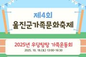 [ 신경북일보 ] 울진군은 울진군가족센터가 오는 10월 18일 오후 1시부터 평해생활체육공원 축구장에서 제4회 울진군가족문화축제‘우당탕탕 가족운동회’를 개최한다. 이번 축제는 지난해에 이어 두 번째로 열리는 가족운동회로, 온 가족이 함께 어울려 즐길 수 있는 체험과 놀이 프로그램이 준비된다. 연 만들기, 달고나 만들기, 키링 만들기 등 체험 부스를 마련해 다양한 즐길 거리를 제공하며, 가족 대항 레크리에이션, 행운권 추첨 등 푸짐한 선물이 준비되어 있어 참여 가족 모두가 특별한 추억을 만들 수 있도록 다채롭게 구성할 예정이다. 행사는 오후 1시부터 오후 4시 30분까지 운영되며 울진군민 2인 이상 가족이면 누구나 무료로 참여 가능하다. 참가 신청은 울진군가족센터 홈페이지를 통해 가능하며, 자세한 사항은 유선으로 문의하면 된다. 손병복 울진군수는“이번 축제가 세대가 함께 어울리고 소통하는 장이 되어 가족의 소중함을 다시금 느끼는 계기가 되길 바라며 군민여러분의 많은 참여를 부탁드린다”라고 말했다.