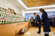 [ 신경북일보 ] 이재명 대통령과 김혜경 여사가 1월 27일 서울 종로구 서울대병원 장례식장에 마련된 고 이해찬 전 총리 빈소를 찾아 영정을 향해 묵념하고 있다. [뉴스출처 : 청와대]