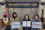 [ 신경북일보 ] 경산여성새로일하기센터(센터장 채은주)는 11일 시청 별관 회의실에서 기업 관계자 등 20여 명이 참여한 가운데 '가족·여성 친화 기업 일촌 협약 및 간담회'를 개최했다. 이번 협약식은 지역 여성의 지속 가능한 고용환경을 조성하고 기업의 가족 친화적 문화 확산을 지원하기 위하여 마련됐으며, (주)디에이치파트너스 등 10개 협약기업들은 ▲여성 친화적 조직문화 조성, ▲여성인력 적극 채용, ▲전문 인력 양성발굴 등에 적극 협력하기로 약속했다. 협약식 이후 진행된 간담회는 일촌 협약 기업과 취업 연계 우수 기업 등 9개 기업 관계자가 참석해 기업의 애로사항을 청취하고 여성의 사회 진출을 위한 환경 개선 방안 등에 대해 논의하는 시간을 가졌다. 채은주 센터장(사회복지과장)은 “경산시여성새로일하기센터와 경산시는 앞으로도 기업 현장의 요구에 맞춘 인재 발굴과 사후관리 등을 강화하여 취업 연계에 지원하겠다”고 말했다.