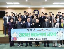 [ 신경북일보 ] 청양군의회는 2일 2026년 병오년 새해를 맞아 시무식을 열고 본격적인 의정활동을 시작했다. 이날 시무식은 의원들과 의회사무과 직원들이 함께한 가운데 신년 인사를 시작으로 2026년 1월 1일자 임용장 수여와 청렴 실천 다짐 순으로 진행하며 새해 힘찬 출발을 알렸다. 의원들은 지난 한 해를 돌아보며 새해에도 군민의 뜻을 최우선으로 삼고 부여된 책임과 사명을 깊이 새겨 의회 본연의 역할에 충실한 의정활동을 펼쳐 나가겠다는 결의를 다졌다. 김기준 의장은 신년 인사를 통해 “어려운 여건 속에서도 군민을 위한 의정과 행정을 위해 한결같이 헌신해 주신 동료 의원들과 공직자 여러분의 노고에 진심으로 감사드린다”며 “앞으로도 청양군의회는 군민의 목소리를 의정의 중심에 두고 신뢰받는 의회 일 잘하는 의회로 한 단계 더 도약하겠다”고 강조했다. 한편, 청양군의회는 1월 1일 칠갑산 충혼탑에서 조국을 위해 헌신하신 순국선열과 호국영령의 넋을 기르는 참배를 시작으로 2026년 공식 의정활동을 시작했으며 오는 27일 제317회 임시회를 시작으로 정례회 2회, 임시회 6회 총 79일간 2026년 회기