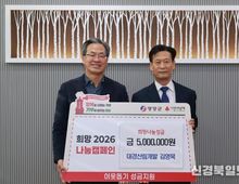 [ 신경북일보 ] 대경산림개발 대표 김영묵(전 농업경제건설국장)은 1월 21일 영양군을 방문해 지역의 어려운 이웃과 희망을 나누고자 성금 500만원을 기부하며 '희망2026나눔캠페인'에 동참했다. 김영묵 대표는 매년 이웃사랑을 실천하며 성금 기탁을 이어오고 있는 꾸준한 후원자로, 지속적인 사회봉사와 기부활동을 통해 영양군 발전에 기여하고 있다. 특히 40년간의 공직생활 동안 산림 분야에서 많은 성과를 거두며 산림행정 발전에 큰 역할을 한 바 있다. 김영묵 대표는“영양군과 함께해 온 시간에 대한 고마운 마음을 나눔으로 전하고 싶었다. 앞으로도 지역사회에 도움이 될 수 있도록 계속해서 관심과 응원을 이어가겠다.”고 소감을 밝혔다. 영양군 관계자는“매년 잊지 않고 이웃사랑을 실천해 주시는 따뜻한 마음에 깊이 감사드리며, 이번 성금이 지역의 어려운 이웃들에게 큰 힘과 위로가 될 것”이라며 감사의 뜻을 전했다.