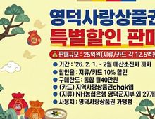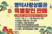 [ 신경북일보 ] 영덕군은 설 명절을 앞두고 지역 상권 활성화와 소비 촉진을 위해 2월 1일부터 ‘영덕사랑상품권’을 10% 특별 할인 판매한다. 영덕군은 지난 1월 할인 판매의 높은 관심과 설 명절 수요를 반영해 2월 판매 규모를 기존의 두 배인 25억 원(지류·카드 각 12.5억 원)으로 확대했다. 다만, 보다 많은 이용자가 구매할 수 있도록 1인당 구매 한도를 월 40만 원으로 제한키로 했다. 상품권은 NH농협은행 영덕군지부를 포함한 관내 금융기관 28개 판매대행점에서 구매할 수 있으며, 카드형 상품권은 지역사랑상품권 chak앱을 통해 충전하거나 판매대행점에서 오프라인으로 충전할 수 있다. 황정기 일자리경제과장은 “설 연휴 기간 지역 소비를 촉진하고 더 많은 군민이 혜택을 누릴 수 있도록 25억 원 한도 내에서 할인 행사가 이뤄지는 만큼 예산이 소진되기 전 혜택을 누리시길 바란다”라고 전했다.