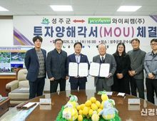 [ 신경북일보 ] 성주군과 와이씨켐㈜이 3월 11일 군수실에서 투자양해각서(MOU)를 맺고 상호 협력에 합의했다. 체결식에는 성주군 관계자와 이성일 와이씨켐㈜ 대표이사가 참석했으며, 투자계획 발표와 양해각서 서명, 기념촬영, 환담이 이어졌다. 와이씨켐㈜은 성주군에 본사를 둔 반도체 소재 중견기업으로, 포토레지스트와 반도체 웨이퍼 세정제 등을 생산하고 있다. 이번 협약에 따라 와이씨켐㈜은 164억 원을 투입해 제5공장 증설에 나선다. 이 가운데 138억 원은 건설과 설비에 사용되며, 2028년까지 20명 이상의 신규 채용을 통해 지역 일자리 창출에도 기여할 예정이다. 성주군은 대규모 투자 유치를 통해 지역경제 활성화와 산업 경쟁력 강화, 세수 증대 효과를 기대하고 있다. 성주군 관계자는 "이번 투자양해각서 체결은 관내 기업의 안정적인 투자 확대와 지역 산업 경쟁력 강화를 위한 의미 있는 계기"라며 "기업의 투자사업이 차질 없이 추진될 수 있도록 필요한 행정 지원에 적극 나서겠다"고 말했다.