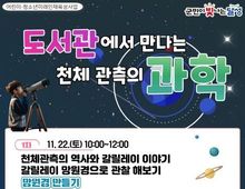 [ 신경북일보 ] 달성군립도서관은 11월 4일부터 ‘도서관에서 만나는 과학(11월 22일·29일)’ 4분기 프로그램 참여자를 모집한다고 밝혔다. 이번 프로그램은 과학에 대한 호기심을 자극하고, 가족 단위로 함께할 수 있는 과학 체험 기회를 제공하기 위해 기획됐다. 4분기 주제는 ‘천체 관측의 과학’으로, 초등학생과 그 가족들이 별과 행성을 관찰하며 우주의 신비를 배우는 체험형 과학 교육으로 구성됐다. 1차 수업은 ‘천체관측의 역사와 갈릴레이 이야기’를 주제로 11월 22일 달성군립도서관 시청각실에서 진행된다. 수업은 망원경의 원리와 별의 색·온도에 대한 이론 교육과 직접 망원경을 만드는 실습 활동으로 이루어져있다. 2차 수업은 11월 29일 국립대구과학관 천문대에서 열린다. 참가자들은 천체망원경을 활용해 별자리와 행성을 관측하고, 전문 해설사와 함께 우주를 탐험할 기회를 갖게 된다. 참가 대상은 관내 초등학교 4~6학년생 30명이며, 11월 4일 오전 9시부터 달성군립도서관 홈페이지를 통해 선착순으로 모집한다. 최재훈 달성군수는 “국립대구과학관과의