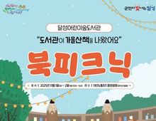 [ 신경북일보 ] 달성어린이숲도서관은 오는 11월 첫 주말, 유가읍 테크노폴리스 중앙공원에서 ‘도서관이 가을 산책을 나왔어요’를 주제로 ‘북피크닉’ 행사를 개최한다고 밝혔다. 행사는 지역 주민들에게 도서관의 새로운 형태인 야외도서관을 소개하며, 일상 속에서 책과 더 가까워질 수 있는 기회를 제공하고자 기획됐다. 지난 10월에 이어 달성군에서 두 번째로 열리는 야외도서관 행사로, 11월 1일과 2일 양일간 운영된다. 행사 기간 중앙공원 곳곳에는 빈백과 캠핑 테이블, 인디언텐트 파라솔, 책장 등 독서를 위한 편안한 공간들이 마련된다. 특히, 어린이와 가족 단위 이용객들이 편안하게 책을 읽을 수 있도록 독서존도 별도로 조성되며, 도서 디스플레이 구역에는 아이책, 엄마책, 아빠책 등 총 700여 권의 다양한 도서가 전시된다. 이와 함께 남녀노소 누구나 즐길 수 있는 ▲팀 ‘울토리’의 국악 공연 ▲‘책사랑 책갈피 만들기’ ▲‘비즈 액세서리 만들기’ ▲‘나만의 에코백 꾸미기’ 등 다양한 프로그램도 준비된다. 도서관 측 관계자는 “야외에 비치된 책, 함께 진행되는 국악 공연, 다양한 체