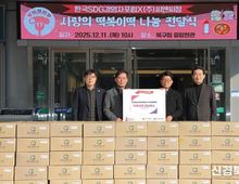 [ 신경북일보 ] 한국SDG경영자포럼(중앙회장 김규학)과 ㈜씨앤씨정(대표 조현식·차승일)에서는 12월 11일 북구 지역아동센터 아동을 위한 900만원 상당의 떡볶이떡 8kg 256박스를 대구 북구청(청장 배광식)에 기탁했다. 이날 전달식에는 배광식 북구청장과 김규학 중앙회장, 차승일 대표이사 등이 참석했으며, 우리 지역의 나눔문화 확산에 대한 다양한 의견을 나누었다. 김규학 중앙회장은 “㈜씨앤씨정에서 아이들을 위해 기부를 결심해 주셔서 의미 있게 생각한다”며 “한국SDG경영자포럼도 앞으로 지역사회 나눔과 연대의 가치를 확산하는 데 함께하겠다”고 말했다. 배광식 북구청장은 “두 기관이 함께 아이들을 위해 따뜻한 마음을 전해 주셔서 감사드린다”며, “기탁해 주신 떡볶이떡이 아이들에게 큰 힘이 될 수 있도록 잘 전달하고, 아동들이 안전하고 행복하게 성장할 수 있는 환경 조성에 더욱 힘쓰겠다”고 전했다. 한편, 기탁된 떡볶이떡 256박스는 대구사회복지공동모금회를 통하여 관내 지역아동센터 45개소에 골고루 전달되어 아이들의 건강한 겨울나기에 도움이 될 전망이다.