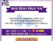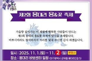 [ 신경북일보 ] 용대리 마을회와 용대리 용&꽃 축제위원회는 오는 11월 1일부터 2일까지 이틀간, 용대리 마을회관 및 바보센터 일원에서 '제2회 용대리 용&꽃 축제'를 개최한다. 이번 행사는 군위군의 역점시책인 ‘군위형 마을만들기 사업’의 일환으로 추진되는 주민주도형 축제로, 마을 주민이 직접 기획하고 운영하는 공동체 중심형 축제이다. 군위형 마을만들기사업은 주민 스스로 마을의 문제를 발굴하고 지역 자원을 활용해 발전 방안을 모색하는 자율·참여형 지역활성화 사업으로, 행정이 아닌 주민의 주도 아래 지속가능한 마을공동체를 만들어가는 것을 목표로 하고 있다. 용대리 마을은 본 사업의 스타마을로 선정되어, 마을경관 개선·소득창출·공동체 프로그램 등 다양한 활동을 추진해왔으며, 이번 축제는 그 성과를 군민과 함께 나누는 뜻깊은 자리이다. 축제는 ‘꽃으로 물들고, 용처럼 비상하자’를 주제로 열리며, 마을 주민들의 참여와 재능이 어우러진 다채로운 프로그램이 마련됐다. 행사장에서는 주민 사진전, 주민 예술작품 전시회, 원예·캘리그라피·도자기·테라리움 체험부스, 농산물 직거래장터 및 플리마켓이 운영된다. 주민들이 직접 생산한 농산물과 수공예품을 전시·판매함