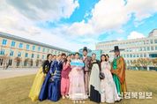 [ 신경북일보 ] 김혜경 여사는 한복의 날을 맞아 지난 21일 서울 의정부지 역사유적광장에서 열린 ‘2025 한복문화주간 기념행사’에 참석한 데 이어, 24일 오후 서울공예박물관을 찾아 한복 입는 문화 확산을 위한 ‘#한복해요 챌린지 이벤트’에 동참했다. #한복해요 챌린지 이벤트는 한복문화주간을 기념해 일상 속에서 한복을 입거나 즐기는 모습을 사진과 영상으로 공유하며 한복의 아름다움을 나누는 행사이다. 김혜경 여사도 연분홍빛 한복을 입고 서울공예박물관 앞마당에서 ‘#한복해요’가 쓰인 팻말을 들고 챌린지 이벤트에 참여했다. 시민들이 반가워하며 다가와 인사를 건네자 김혜경 여사는 “한복을 홍보하러 왔다”며 일일이 악수하고 함께 사진을 찍었다. 한때 김혜경 여사와 함께 사진을 찍으려는 줄이 박물관 앞마당에 길게 늘어서기도 했다. 김혜경 여사는 외국인 관광객들에게도 상냥히 인사를 건네며 한복을 소개했다. 특히 러시아에서 한국어를 공부하러 왔다는 학생과는 한복, 한국어의 아름다움 등에 대해 한참 이야기를 나누기도 했다. 한복을 입은 시민들도 눈에 띄었다. 김혜경 여사와 시민들은 서로가 입은 한복