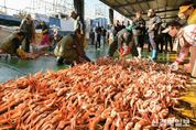 [ 신경북일보 ] 겨울철 최고의 수산물로 꼽히는 영덕대게가 5개월간의 금어기를 마치고 지난 3일 강구항 위판장에서 올해 처음으로 위판됐다. 이번 위판에는 근해 대게 자망어선 4척이 참여해 활발한 경매가 이뤄졌으며, 낙찰가는 마리당 최고가 16만 9,000원, 총판매액은 3억 498만 원을 기록했다. 영덕대게 조업은 매년 11월 초 근해에서 시작해서 12월 연안으로 확장돼 이듬해 5월까지 이어진다. 특히 겨울철 살이 단단하고 풍미가 깊은 ‘박달대게’의 출하가 본격화되면 관광객 유입과 지역경제 활성화가 더욱 기대된다. 이날 경매 현장을 찾은 김광열 영덕군수는 김성식 강구수협 조합장 등과 함께 어업인과 중매인, 그리고 강구대게거리 상인들을 격려하고 애로사항을 경청하는 등 현장의 목소리에 귀를 기울였다. 김성식 강구수협 조합장은 “포항-영덕 고속도로 개통이 예정되어 있고 동해안 철도망도 지속적으로 확충되고 있어 물류나 접근성이 한층 좋아지고 있다”며, “좋아진 교통 인프라만큼 올겨울 영덕대게가 많이 잡혀 어업인들의 소득이 늘어나고 지역 상권도 활성화되길 기대한다”라고 전했다. 김광열 영덕군수는