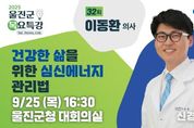 [ 신경북일보 ] 울진군은 오는 9월 25일 오후 4시 30분 울진군청 대회의실에서‘교육하는 의사’이동환 의사를 초청해‘건강한 삶을 위한 심신에너지 관리법’을 주제로 제32회 목요특강을 개최한다. 이동환 의사는 직무스트레스연구소 원장이자 유튜브 구독자 110만 명을 보유한 건강 전문 크리에이터로, 다수의 방송과 저서를 통해 대중에게 쉽고 실천 가능한 건강 관리법을 전해왔다. 이번 특강은 일상에서 바로 실천할 수 있는 건강 관리 방법을 다루며, 특히 현대인이 겪는 만성피로와 스트레스 해소를 위한 구체적 대안을 제시해 군민들에게 실질적인 도움이 될 것으로 기대된다. 손병복 울진군수는 특강에 앞서“바쁜 일상 속에서도 몸과 마음의 균형을 지키는 것이 무엇보다 중요하다”며“이번 특강을 통해 군민들께서 건강을 관리하는 새로운 지혜를 얻고, 더 행복하고 활력 있는 생활을 이어가시길 바란다”라고 말했다. 한편, 제33회 목요특강은 오는 10월 16일(목) 오후 5시, 울진문화예술회관에서 개최할 예정이며, 방송인 서경석을 초청해‘작은 변화가 미래를 바꾼다’를 주제로 강연이 진행될 예정이다.