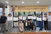 [ 신경북일보 ] 대구 중구 동인동행정복지센터는 지난 29일 동인세대공감마당(국채보상로149길 81)에서 ‘동인동 바리스타 교실 자격증반 수료식’을 개최했다. 동인동 바리스타 교실은 주민들에게 커피에 대한 이해와 전문적인 소양을 갖출 기회를 제공하기 위해 2020년부터 운영된 주민자치프로그램으로, 주민들의 지속적인 관심과 호응으로 올해로 6년째 이어지고 있다. 이번 교실은 지난 7월 4일 개강식을 시작으로 매주 화·금요일 총 16회 과정으로 자격증 취득을 위한 이론 및 실습 교육을 했으며 수강생 8명 전원이 바리스타 2급 자격증을 취득하는 성과를 거뒀다. 이상무 동인동장은 “바리스타 교실이 원활히 진행될 수 있었던 것은 참가자들의 적극적인 열정과 노력 덕분”이라며, “이번 교육이 주민들의 역량 강화와 더불어 일자리 창출에도 도움이 되길 바란다”고 말했다.